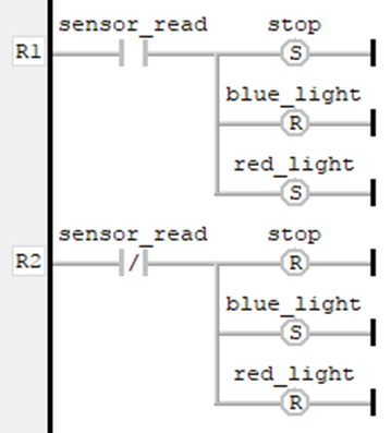 Similarly, a Reset coil – indicated by “R” – can be used to set a Boolean to FALSE.