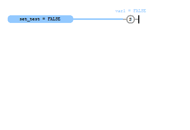 By connecting the Boolean variable set_test to the Boolean variable var1 within a Set coil, you can toggle the value of set_test to set var1 to TRUE. Note that var1 stays TRUE after set_test is set back to FALSE.
